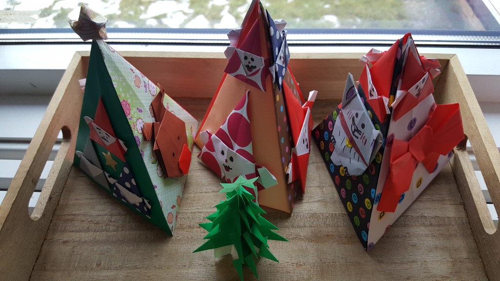 Kostnadsfritt julpyssel som är enkelt även för små barn. För stora barn och medföljande vuxen finns svårare figurer. Man får såklart instruktioner och hjälp med hur man viker origamipapper till olika figurer.