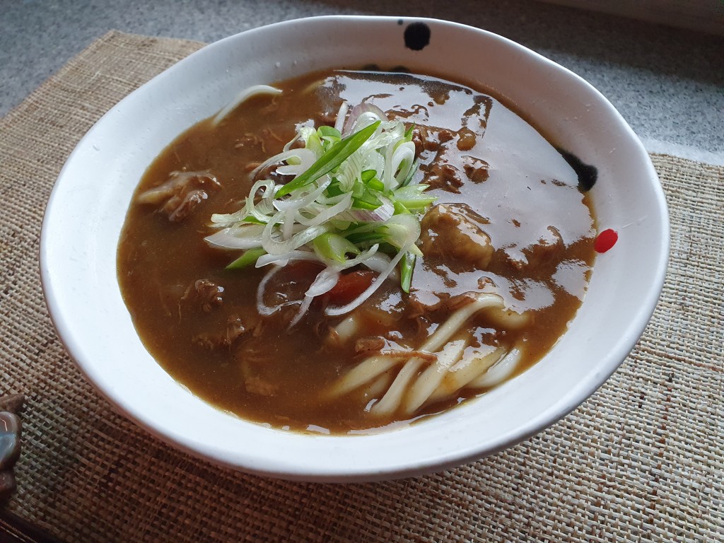 En variant för de nudelrätter. Curry blandas med ovanstående soba/udon buljong. Man får helt enkelt två goda buljonger i en och samma gång! Tjockare buljongen ger mer smak till nudlarna. De är bara så goda!